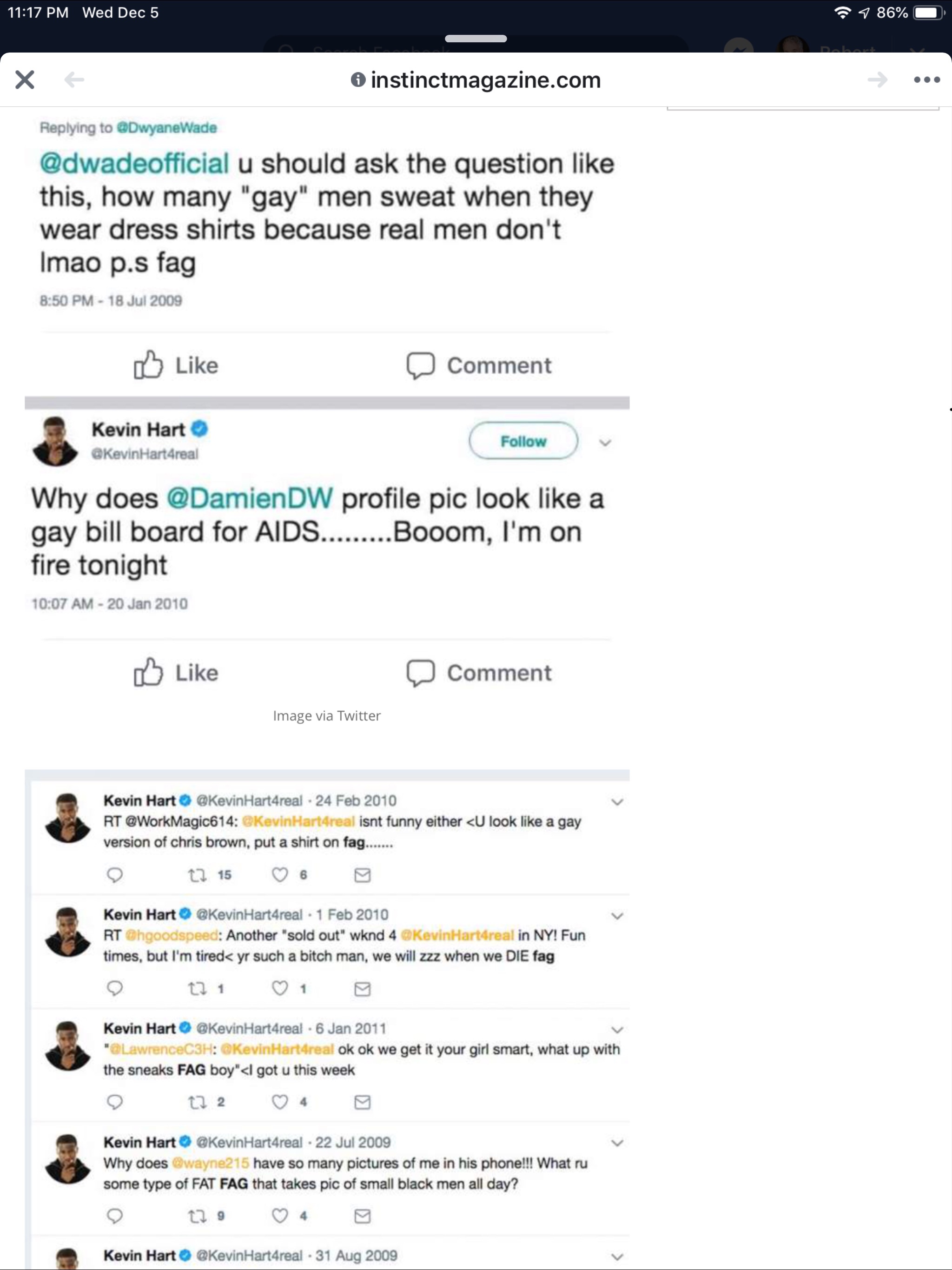 I have been, and still am a target. If you’re a Catholic, the pope says I’m “intrinsically disordered”, if you’re Rick Santorum, I’m a dog fucker, if you’re Kevin Hart, I should have my head bashed in with a dollhouse….