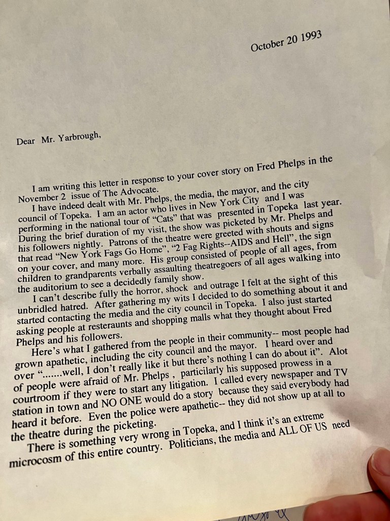 That night, before the show, some of the other cat people came in my dressing room and said the show was being picketed by someone no one should have ever heard of… Fred Phelps.