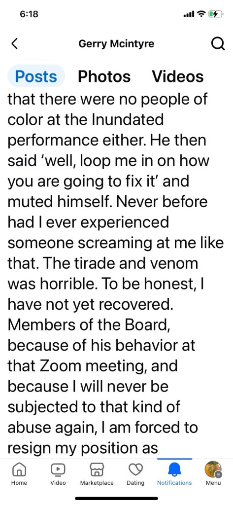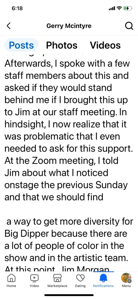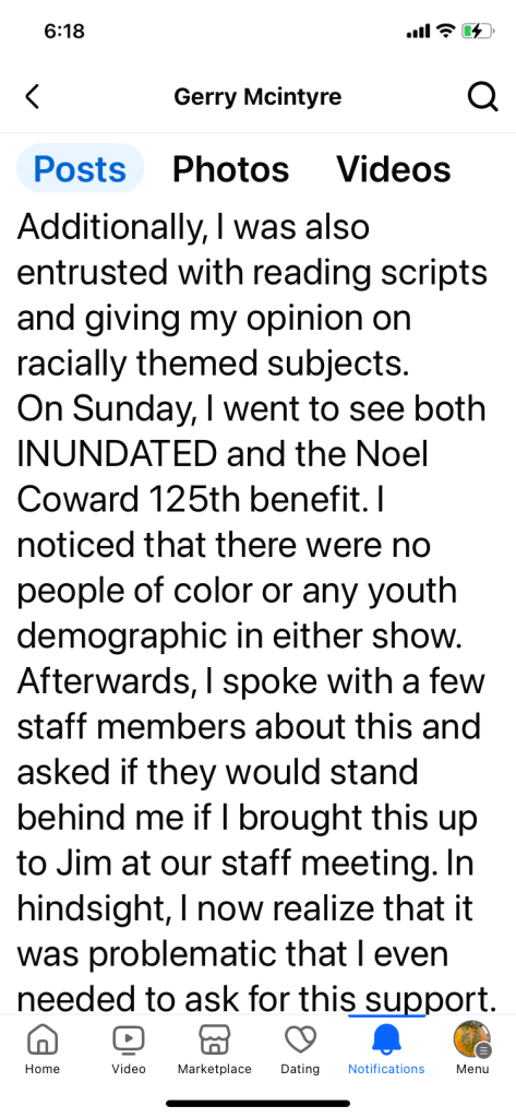 With his friend Patti LuPone in tow, Gerry decided to get the old white dude fired… not only because he’s mean evidently, and a bully!, but a racist. But he’s gonna leave that up to the hundreds of people who read his private letter to the Board that he published on Facebook and God knows where else.